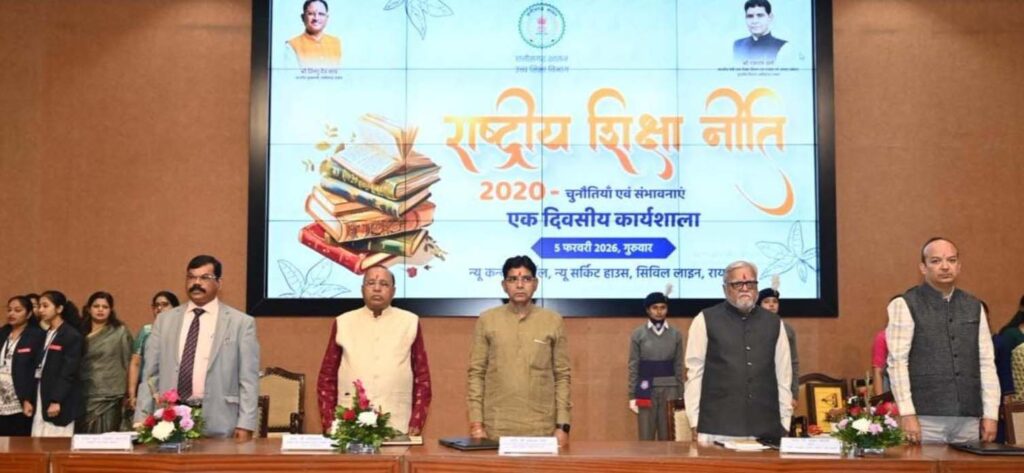 रायपुर। राष्ट्रीय शिक्षा नीति 2020 के क्रियान्वयन से जुड़ी चुनौतियों एवं संभावनाओं पर विमर्श के उद्देश्य से उच्च शिक्षा विभाग द्वारा न्यू सर्किट हाउस, सिविल लाइंस रायपुर में एकदिवसीय कार्यशाला का आयोजन किया गया। कार्यशाला में उच्च शिक्षा मंत्री टंक राम वर्मा ने कहा कि राष्ट्रीय शिक्षा नीति 2020 को केवल कागज़ों तक सीमित न रखकर प्रत्येक विद्यार्थी तक पहुँचाना हम सभी की जिम्मेदारी है। राष्ट्रीय शिक्षा नीति का कुलपति,कुलसचिव,महाविद्यालय के प्राचार्य एवं प्राध्यापक स्वयं अध्ययन करें।उन्होंने राज्य स्तर पर संचालित समितियों द्वारा नियमित समीक्षा, जिला क्लस्टर व्यवस्था, टास्क फोर्स की बैठकें तथा विश्वविद्यालय स्तर पर प्रभावी निगरानी व्यवस्था सुनिश्चित करने पर जोर दिया।