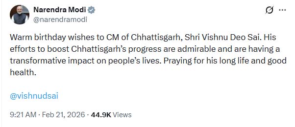 सुबह 10.30 बजे बगिया हेलीपैड पर आगमन के बाद वे अपने निज निवास पहुंचेंगे, जहां जन्मदिन के अवसर पर सत्यनारायण व्रत कथा का आयोजन किया जाएगा। कार्यक्रम पूर्ण होने के बाद मुख्यमंत्री साय अपराह्न 3.40 बजे बगिया से प्रस्थान कर हेलीकॉप्टर से रायपुर लौटेंगे और शाम करीब 5.20 बजे मुख्यमंत्री निवास पहुंचेंगे।