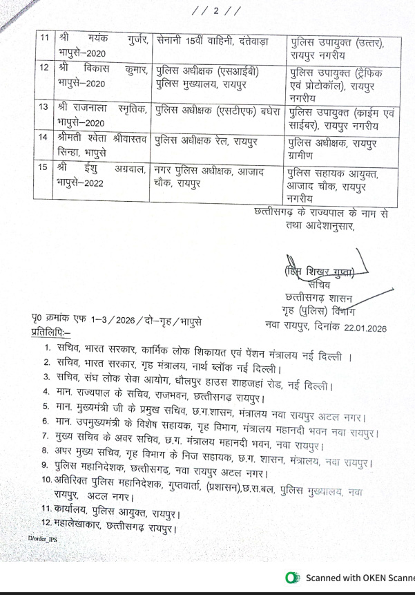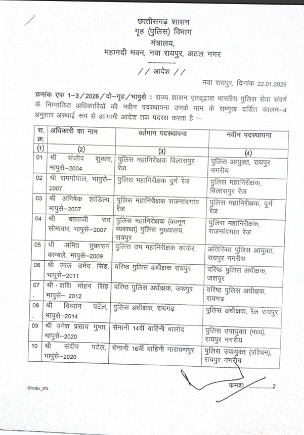 रायपुर। IPS संजीव शुक्ला रायपुर पुलिस कमिश्नर बनाए गए है, छग गृह विभाग ने आदेश जारी किया है, आदेश के अनुसार रायपुर में पुलिस कमिश्नर प्रणाली को लेकर सरकार ने पूरा ढांचा तैयार किया है, इसी के साथ अब रायपुर शहर में 9 आईपीएस अफसरों को पोस्टिंग दी गई है, वर्तमान एसएसपी लाल उमेंद सिंह को जशपुर का एसपी बनाकर भेज दिया गया है, निचे देखें आदेश की कॉपी