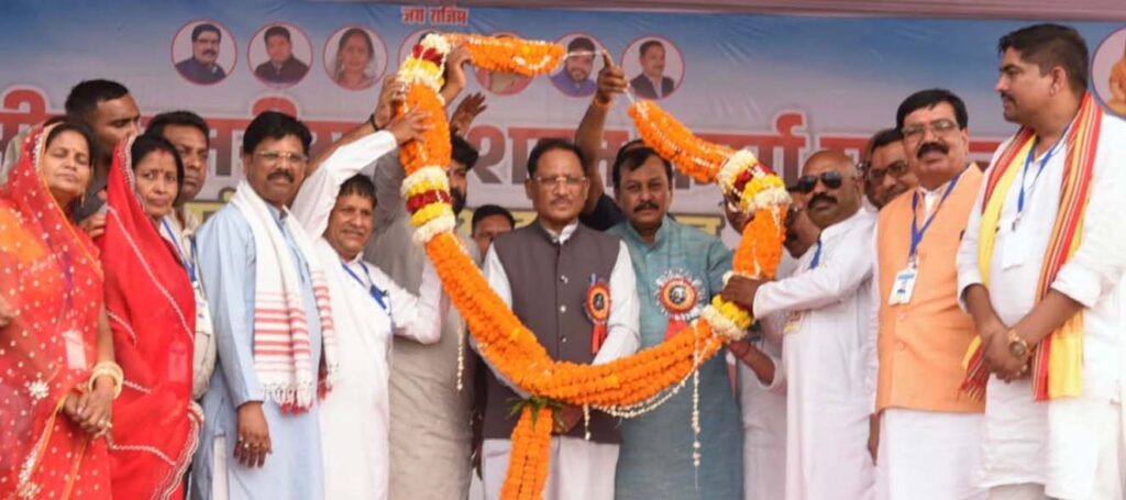 दुर्ग। जिले के ग्राम भरर (जामगांव-आर) में आयोजित तहसील स्तरीय विशाल कर्मा महोत्सव एवं सामूहिक आदर्श विवाह कार्यक्रम सामाजिक समरसता और परंपरा का जीवंत उदाहरण बनकर उभरा, जहां मुख्यमंत्री विष्णु देव साय ने सहभागिता करते हुए 13 नवविवाहित जोड़ों को आशीर्वाद दिया और उनके सुखमय दांपत्य जीवन एवं उज्ज्वल भविष्य की कामना की।