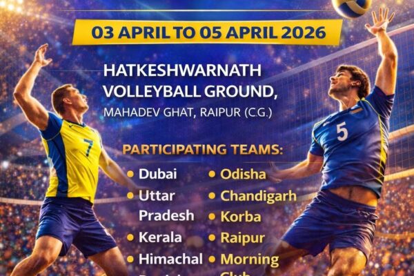 रायपुर। हटकेश्वरनाथ वॉलीबॉल संघ, रायपुर द्वारा 3 से 5 अप्रैल तक महादेव घाट स्थित हटकेश्वरनाथ वॉलीबॉल ग्राउंड में 5वीं ऑल इंडिया वॉलीबॉल टूर्नामेंट 2026 का आयोजन किया जाएगा। प्रतियोगिता का उद्घाटन 3 अप्रैल, शुक्रवार को सुबह 10 बजे विधायक एवं पूर्व मंत्री राजेश मूणत के मुख्य आतिथ्य में होगा। इस अवसर पर मनोज वर्मा, महेन्द्र…