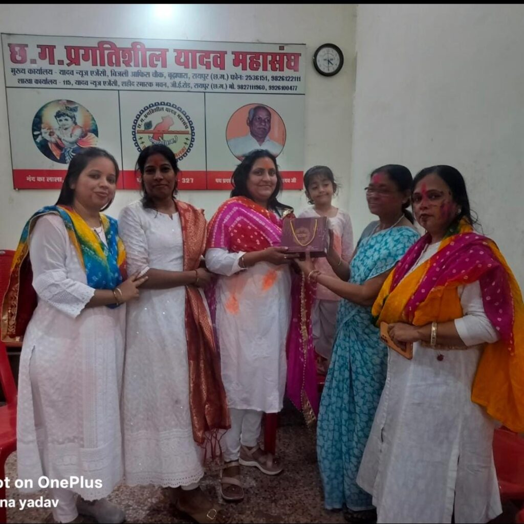 रायपुर। महासंघ के शहीद स्मारक स्थित कार्यालय में छत्तीसगढ़ प्रगतिशील यादव सखी संवाद मंच (प्रयासम) द्वारा अंतरराष्ट्रीय महिला दिवस एवं होली मिलन समारोह का रंगारंग आयोजन उमंग, उत्साह और उल्लास के साथ किया गया। इस अवसर पर समाज की अनेक महिलाओं और युवाओं ने एकत्र होकर महिला शक्ति, सम्मान और सामाजिक सहभागिता का संदेश दिया तथा होली के रंगों के साथ आपसी प्रेम, सौहार्द और एकता को और सुदृढ़ किया।